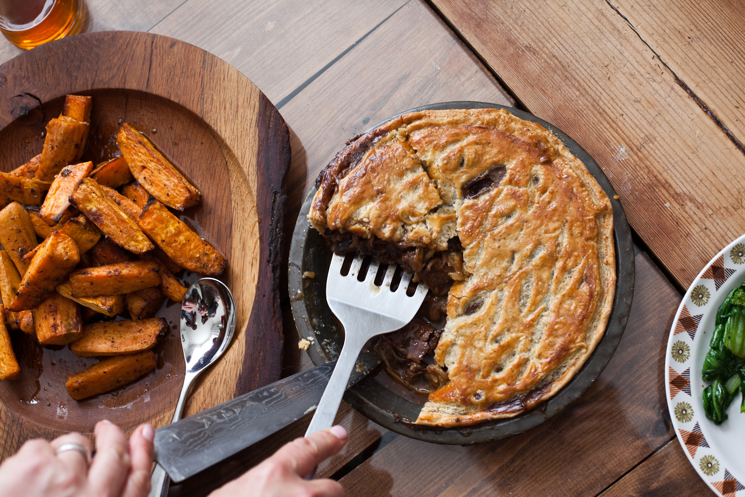 ‘the chairman’ beef lager & shiitake pie with Innis & Gunn Original Oak Aged Beer